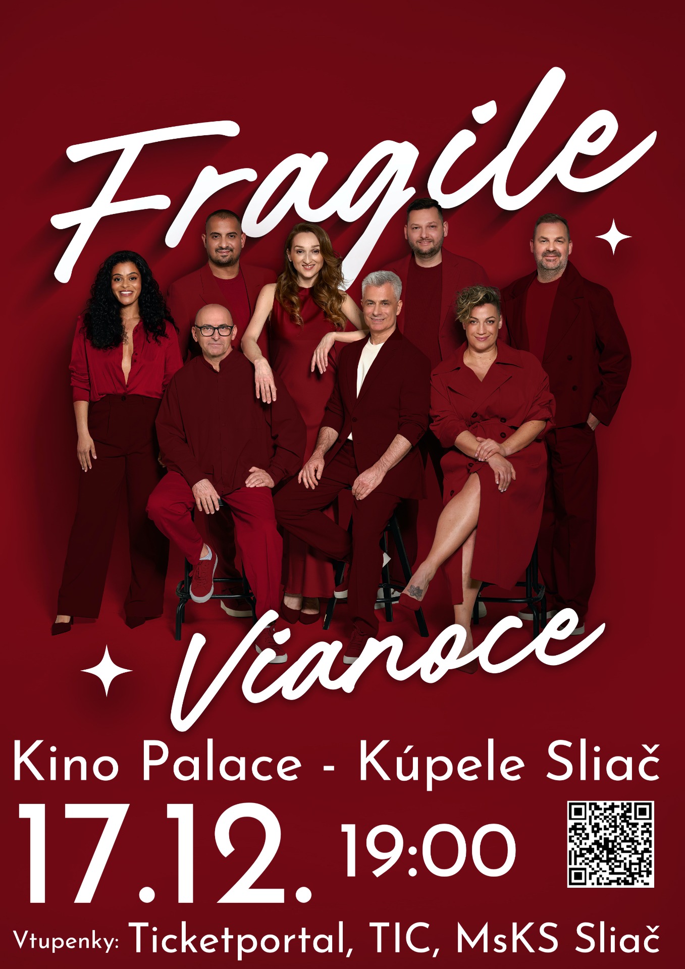 Vstupenky: Mestské kultúrne stredisko Sliač ul. Kúpeľná 11/Turistické informačné centrum ul. SNP 13/ online predaj: https://www.ticketportal.sk/event/FRAGILE-Vianocne-koncerty?idp=210351